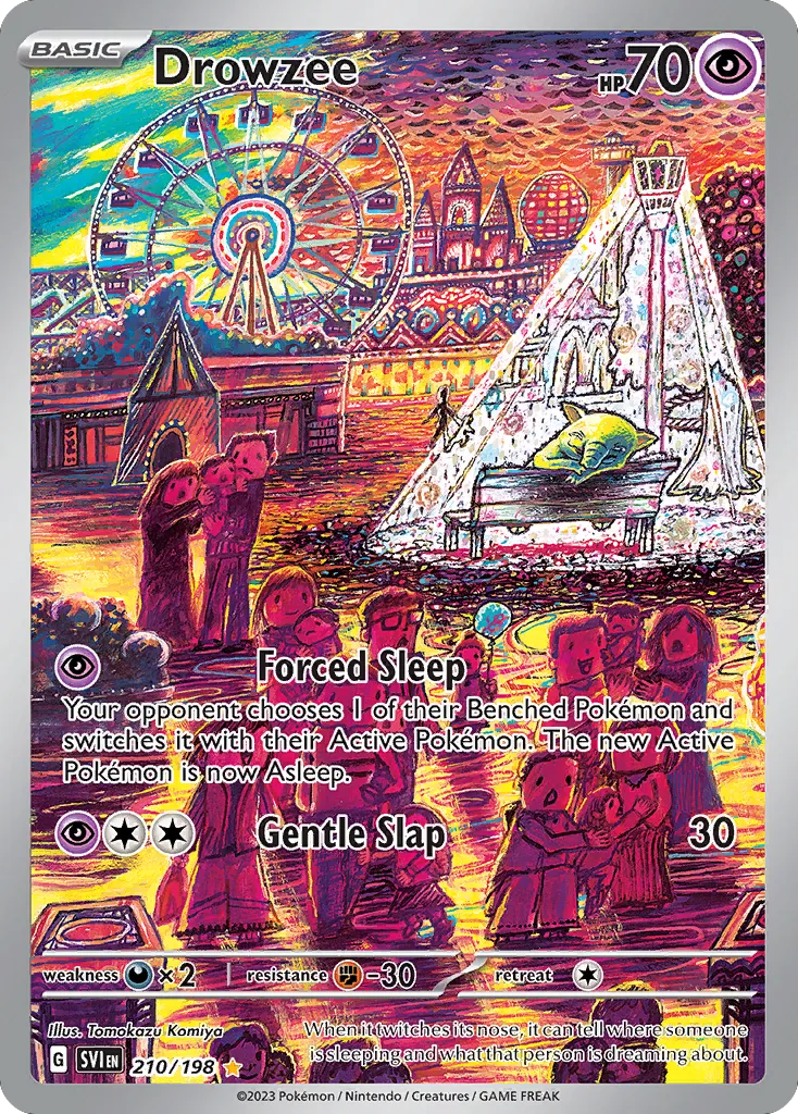 Drowzee is a Psychic-type illustration rare card from sv1 (#210). It was illustrated by Tomokazu Komiya.
