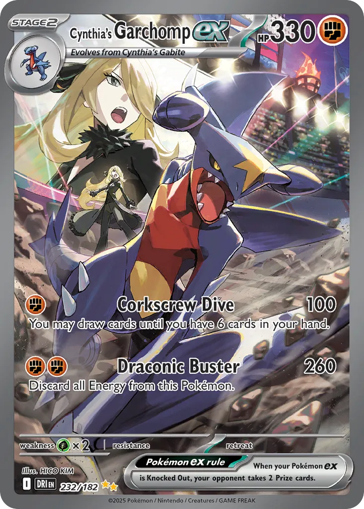 Cynthia's Garchomp ex is a Fighting-type special illustration rare card from sv10 (#232).